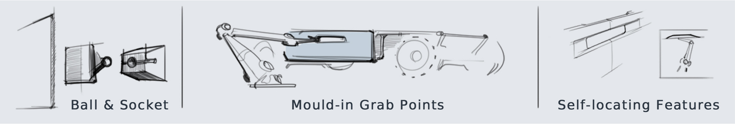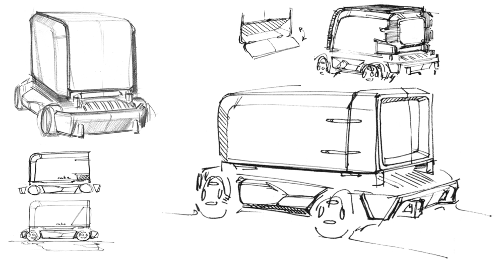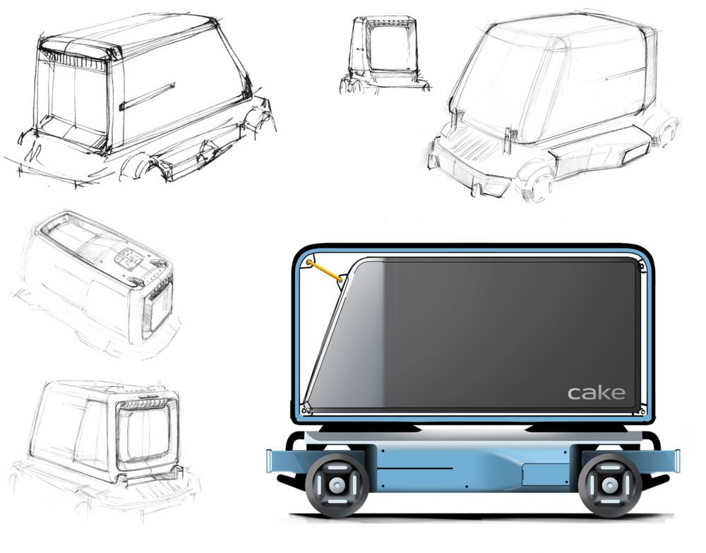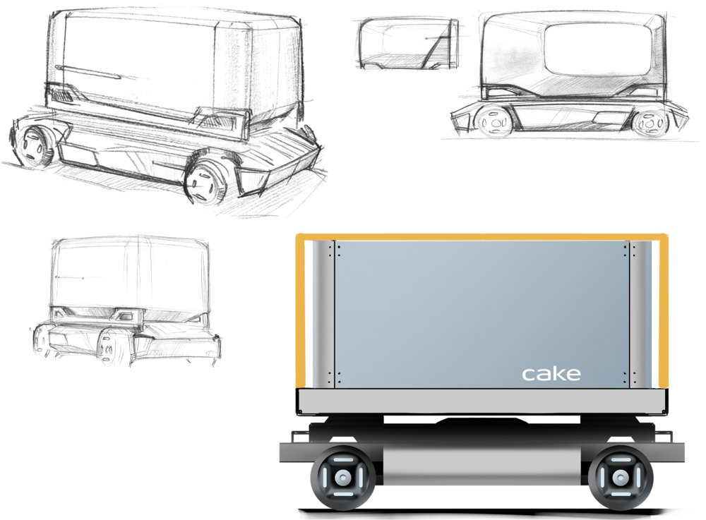 Draw from Cake's existing language of exposed fasteners and simple forms to bring ease of assembly and disassembly to the autonomous fleet market.